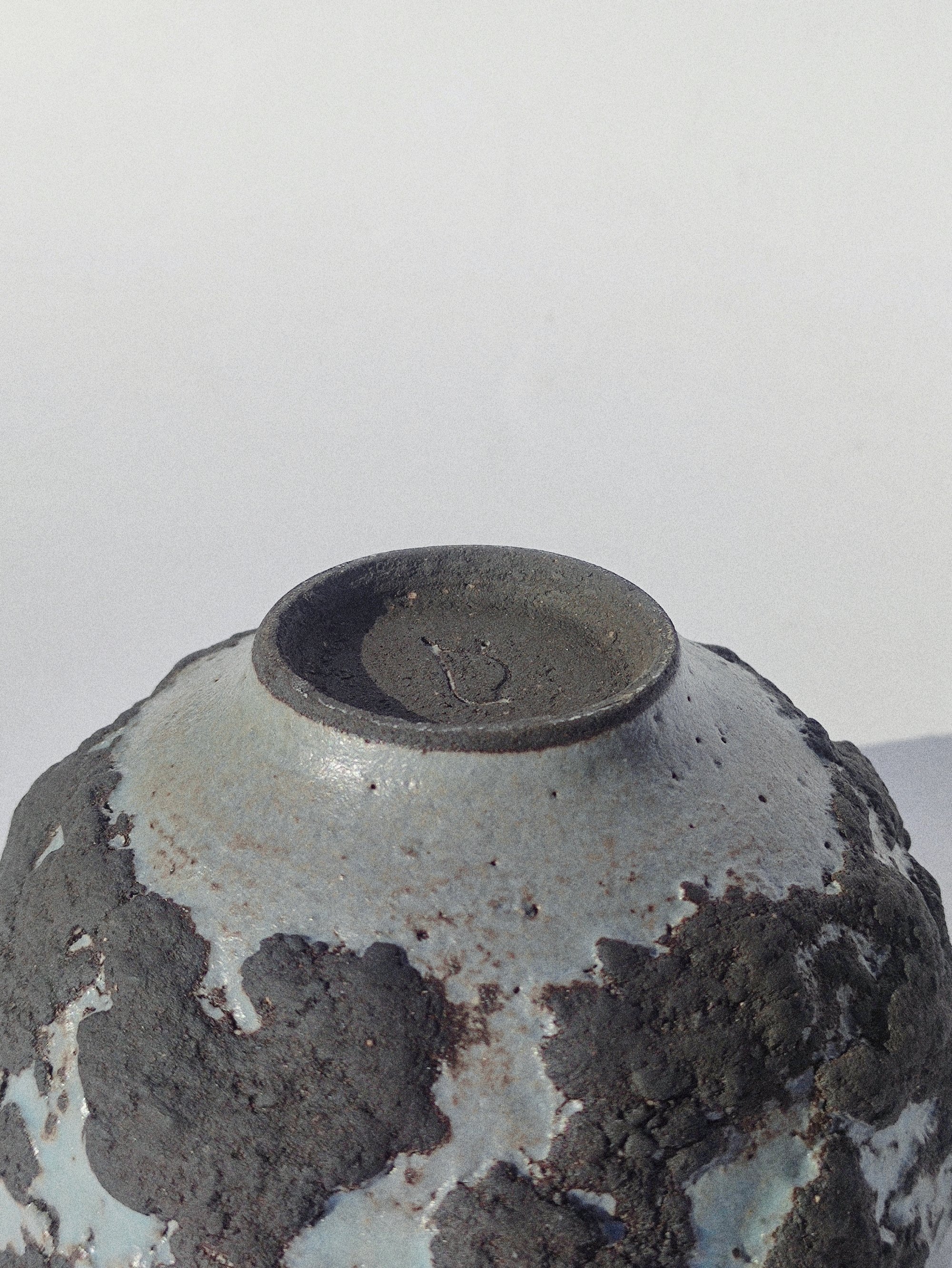 Bol Tellus en grès noir et émail bleu clair mât